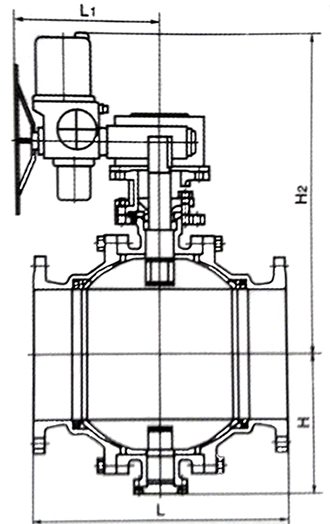 PN1.6MPa下的電動(dòng)固定球閥外形尺寸
