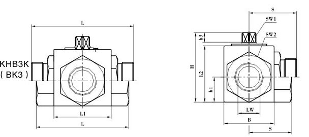 KHB3K(BK3)系列二位三通球閥外形尺寸
